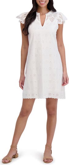 London Times Ruffle Cap Sleeve Embroidered Eyelet Cotton Shift