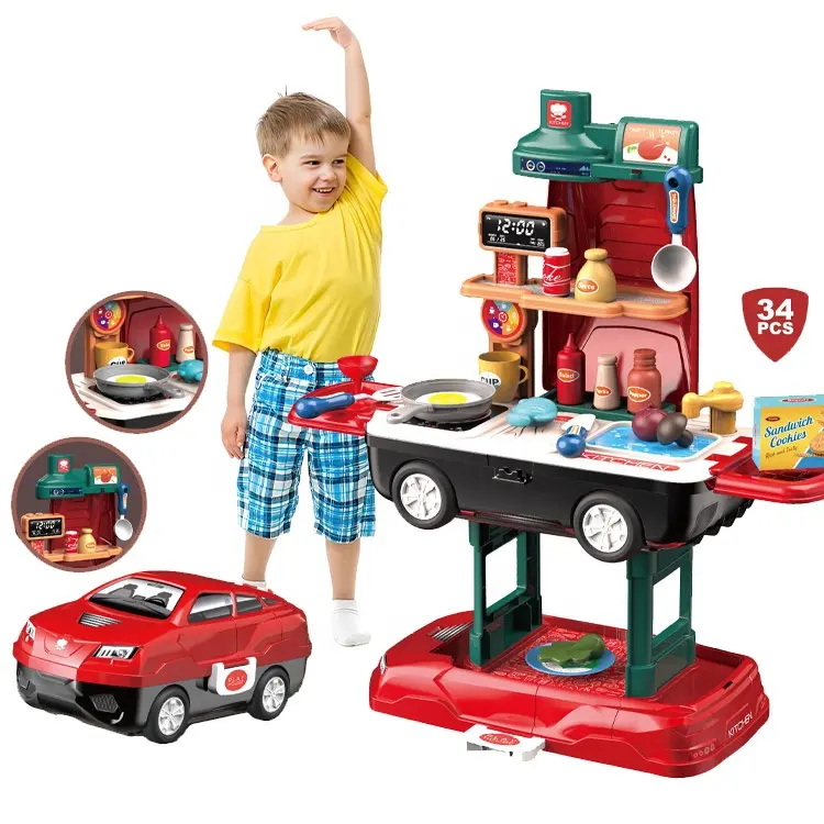 Pro Version 34pcs New Car Suitcase Pretend Play Preschool Kitchen Toys Boy Sustainable