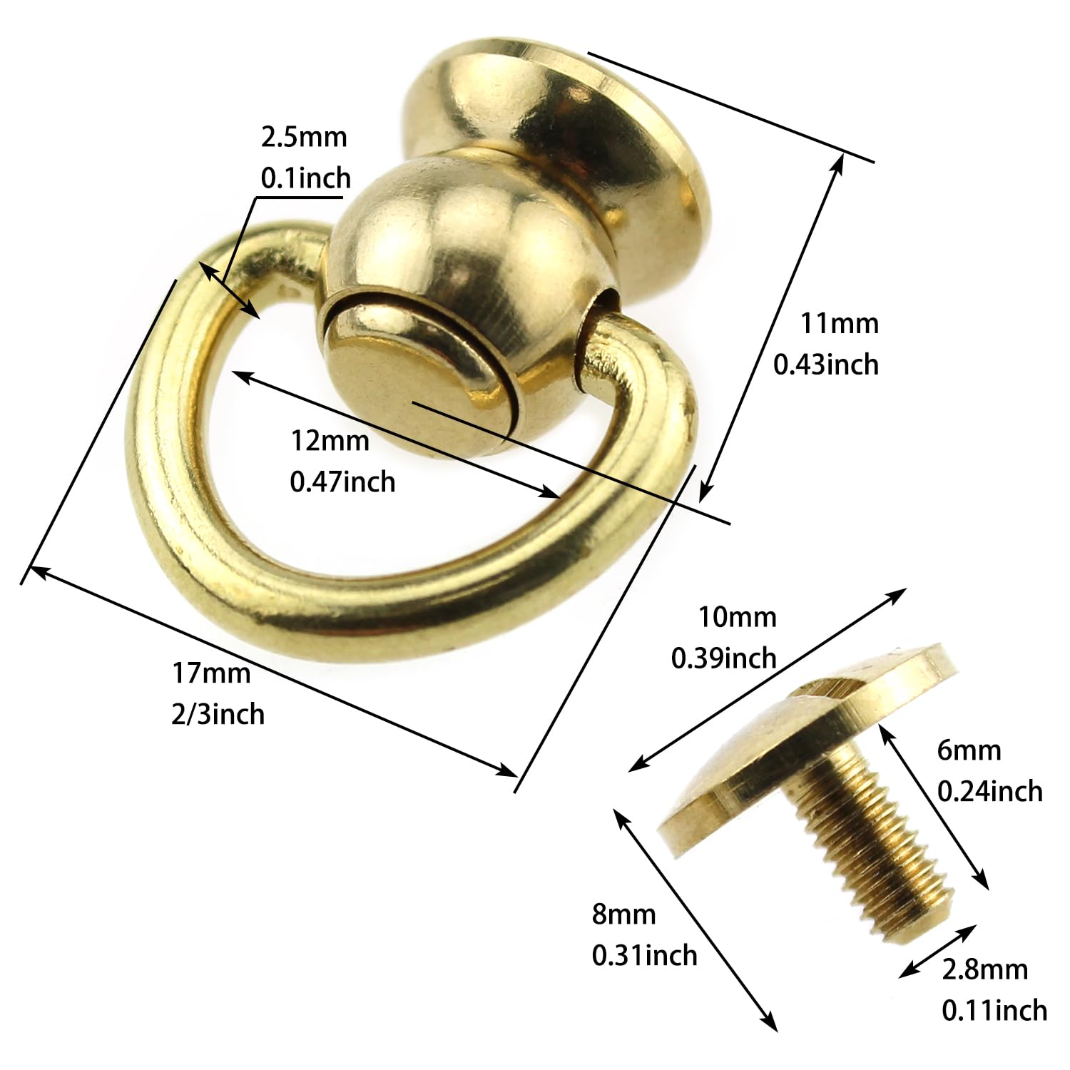 - 10pcs Solid Brass Ball Post Studs Rivet With D Ring Screwback