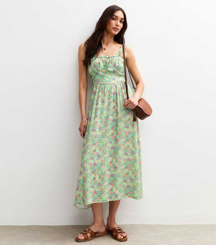 Green Floral Print Strappy Milkmaid Midi Dress, Size Chart for Shoes TheOlawaleBrand Cheap Sale