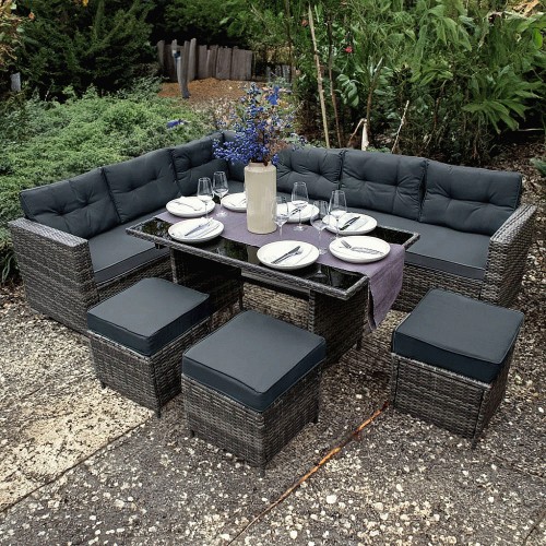 - Palma Grey Corner Rattan Casual Garden Dining and Lounge Set