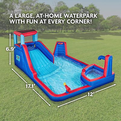 Sunny Fun Inflatable Water Slide Blow up Pool, Kids Water Park for Backyard