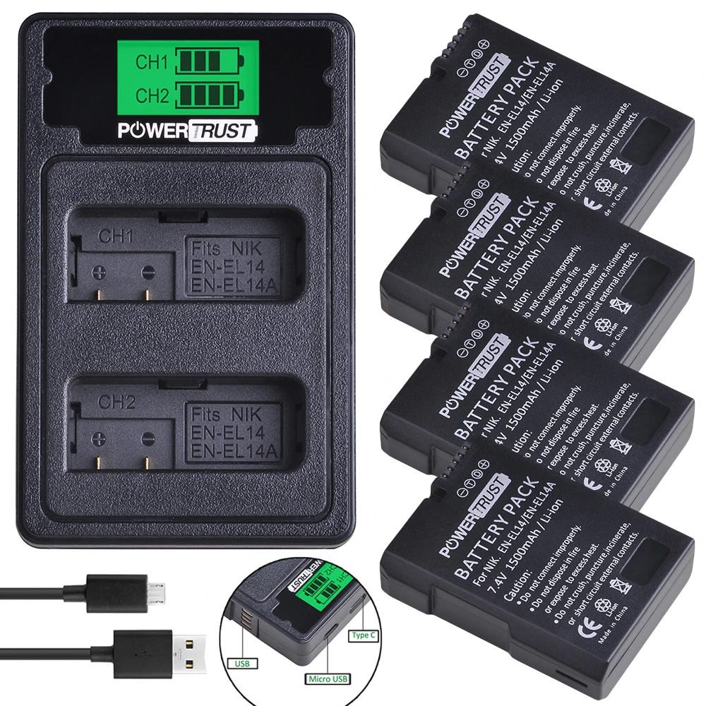 - EN-EL14 Battery and Charger for Nikon EN-EL14 Battery, with Dual Charging Slot, Fit for Nikon D3500 D5600 D3200 D3300 D3400 D5500 Coolpix P7800 P7700