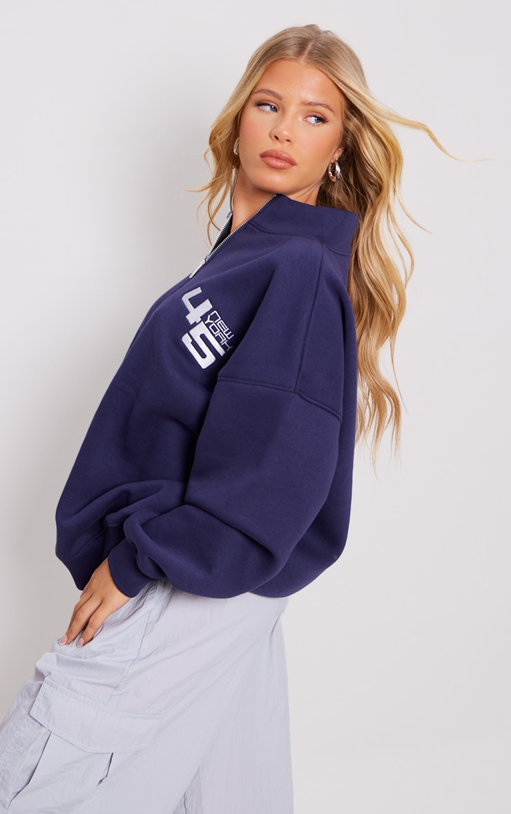 Navy New York 45 Embroidered Half Zip Sweatshirt Athleisure PLT