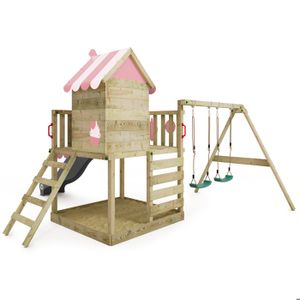 - WICKEY Smart Cave Wooden climbing frame Playhouse with swing sandpit