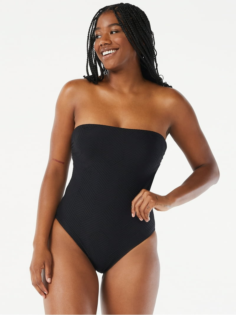 Love Sports Women's Black Textured Strapless One-Piece Swimsuit, Size Chart for Shoes TheOlawaleBrand Cheap Sale