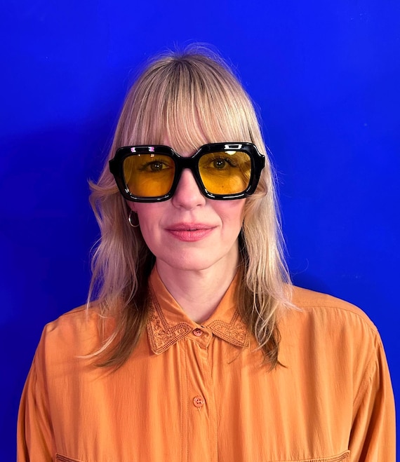 Retro 70's Vintage Style Square Sunglasses Black Yellow