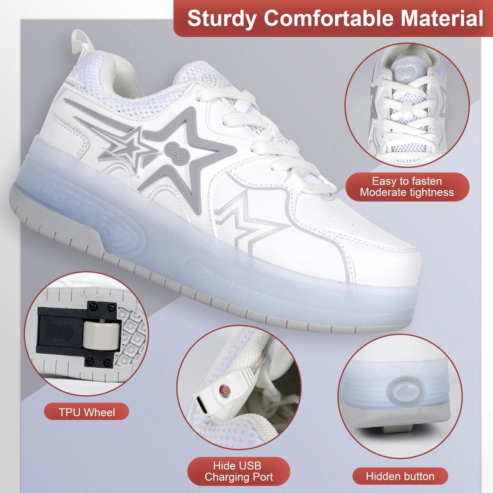 Ragazzo retrattile due scarpe a rullo Quad, LED lampeggiante Sport, Size Chart for Shoes TheOlawaleBrand Cheap Sale