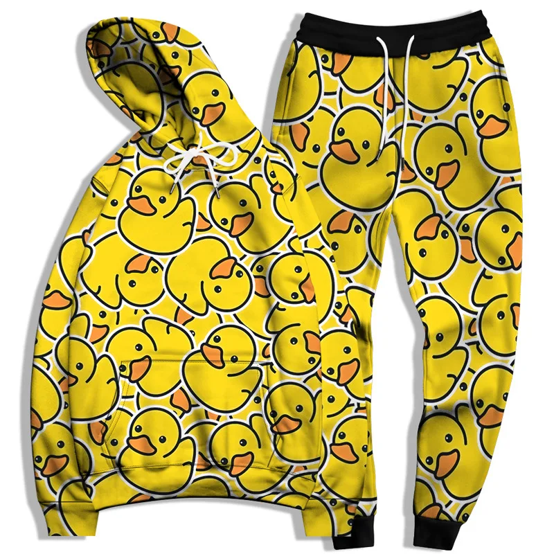 - men' printed yellow duck hooded sweatshirt set casual Temu Nigeria