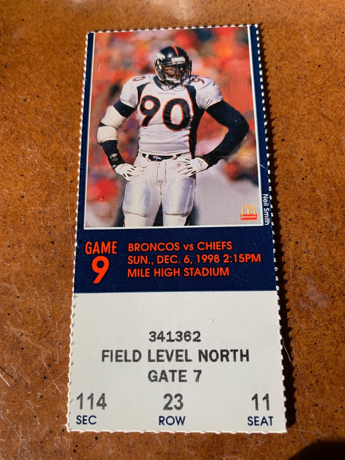 1998 Denver Broncos v Chiefs Football Ticket John Elway Last Game