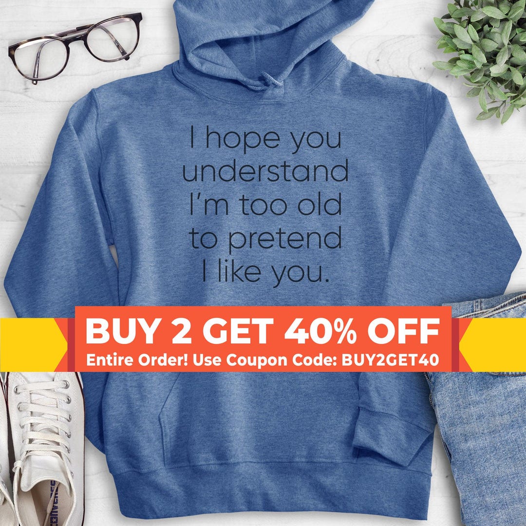 I Hope You Understand I'm Too Old to Pretend I Like You Sweatshirt, Size Chart for Shoes TheOlawaleBrand Cheap Sale