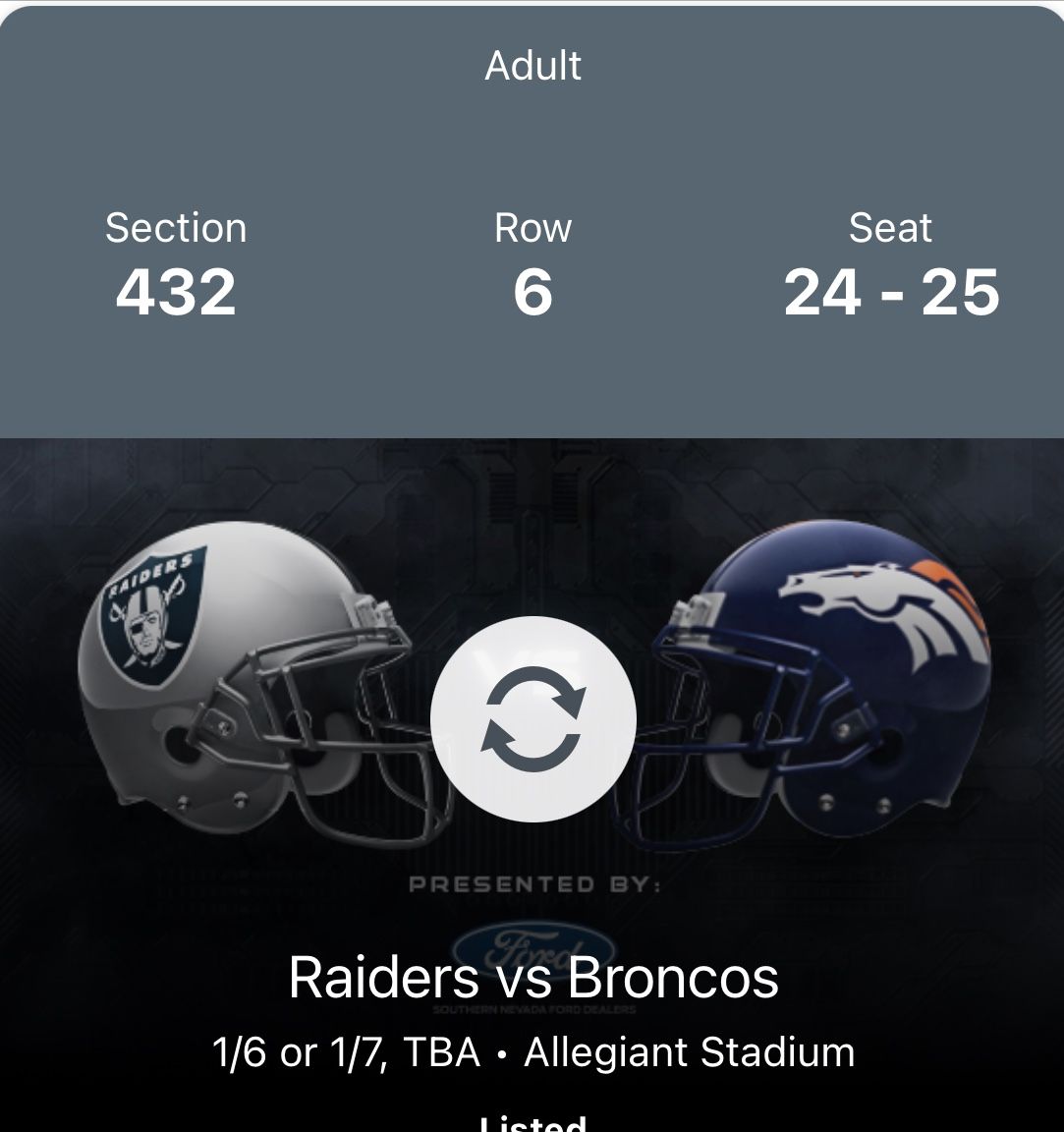 Denver Broncos Las Vegas Raiders Sunday January 7, 2024 Time TBA
