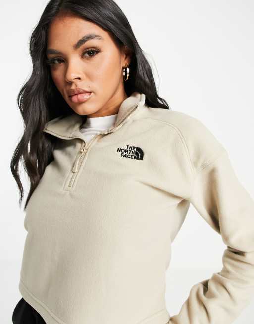 The North Face 100 Glacier 1/4 zip cropped fleece in beige Exclusive at ASOS