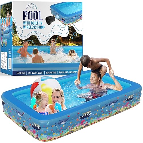 Pattern Inflatable Swimming Pool (120" x x Built-in Air Pump Inflatable Kiddie Pool, Family Pools for Kids and Adults Self Inflating
