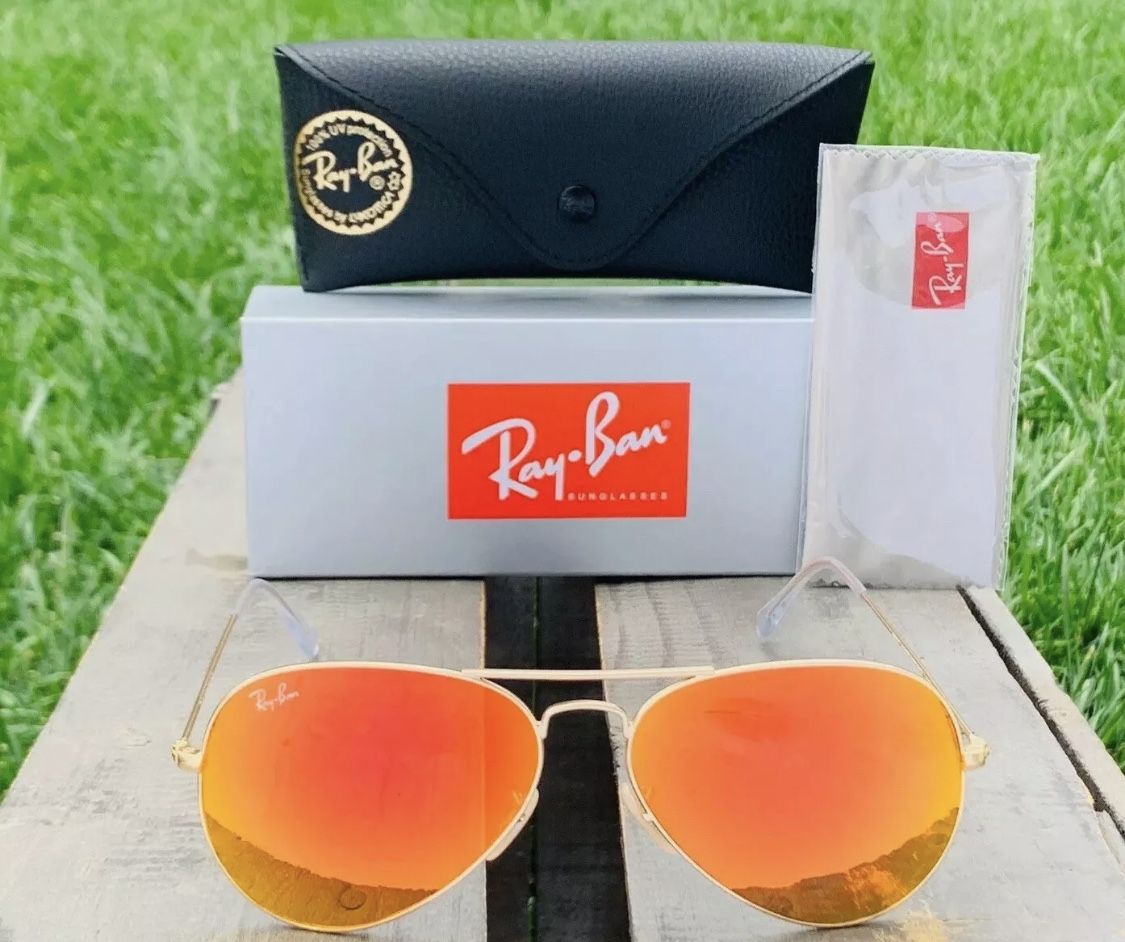 - Authentic Ray-Ban AVIATOR FLASH LENSES Matte Gold Orange