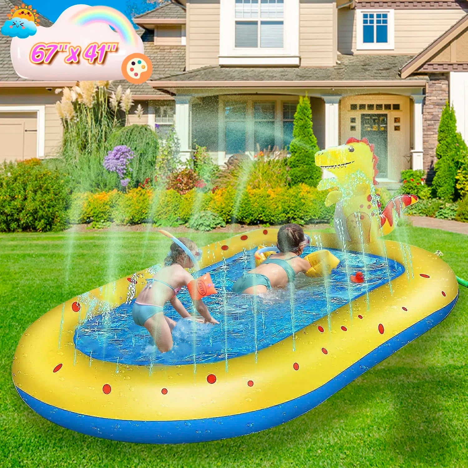 Teblint Inflatable Pool, 67'' x 41'' x 26'' Sprinkler Swimming