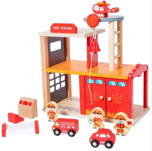 High Quality Kids Role Play Wooden Fire Police Station House Toy