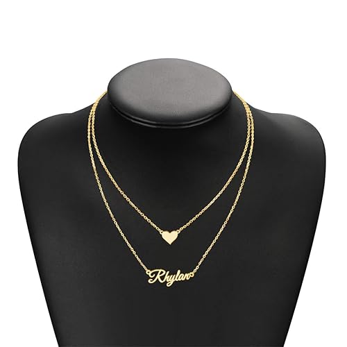 MeMoShe Layered Choker Name Necklace Personalized with Heart