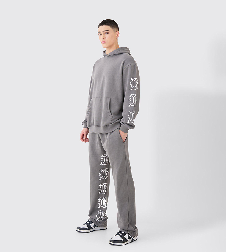 - Oversized Boxy Printed Flared Tracksuit boohooMAN UK