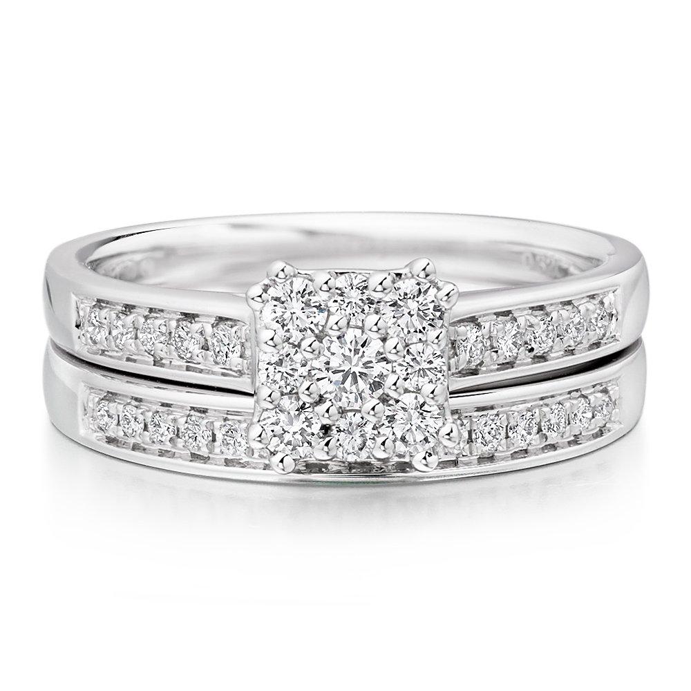 - 9ct White Gold Diamond Cluster Bridal Set Goldmark (AU)