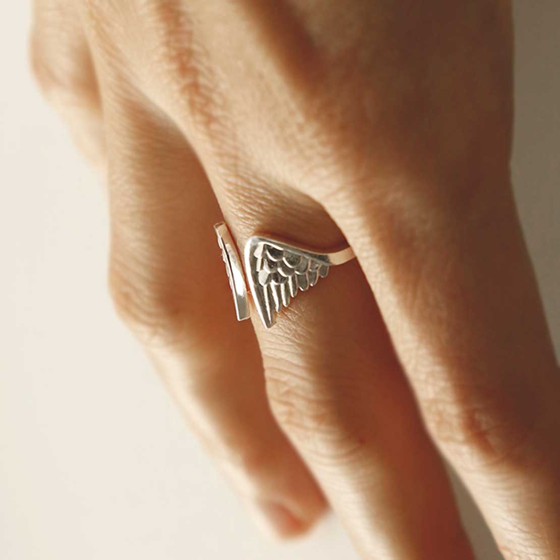 - Sterling Silver Angel Wing Ring HappyGoLicky Jewelry