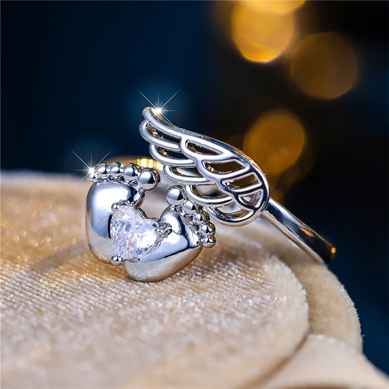Cute Female Small White Adjustable Open Ring Angel Heart Wing, Size Chart for Shoes TheOlawaleBrand Cheap Sale