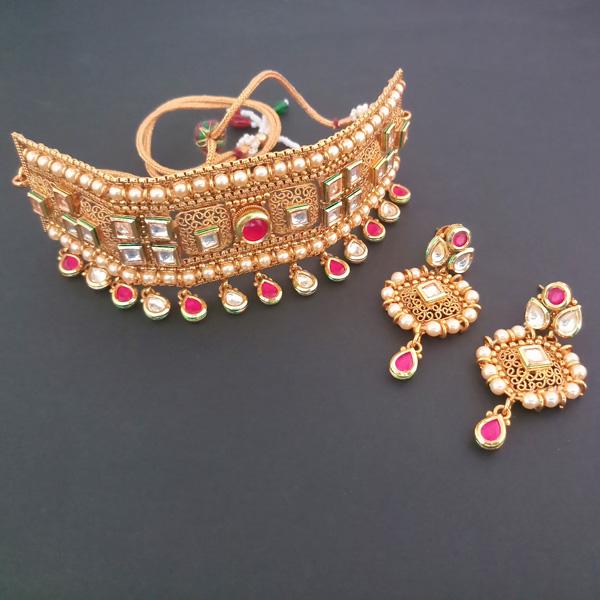 - Gold Plated Copper Choker Necklace Set For Women Jewellery at