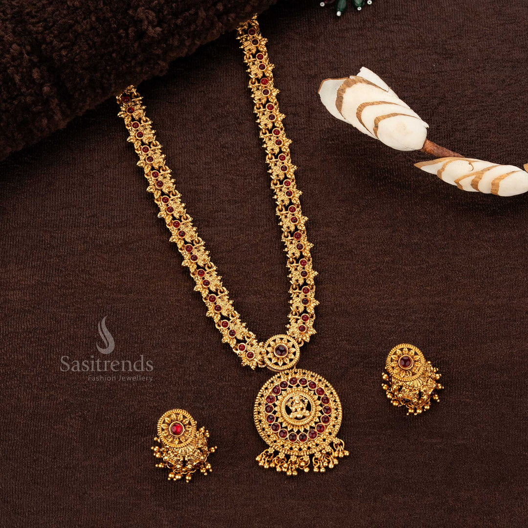 - Temple Jewellery Matte Gold Polish Party Wear Long Necklace Set