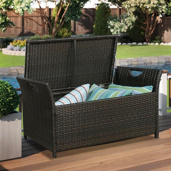 - Outdoor Storage Bench Box Wicker Garden Sheds Tools Cushion Patio