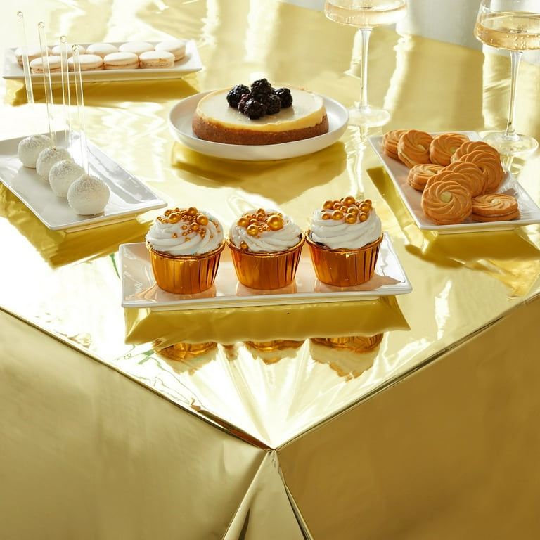 Pack Gold Plastic Tablecloths, Disposable Covers for Events (54