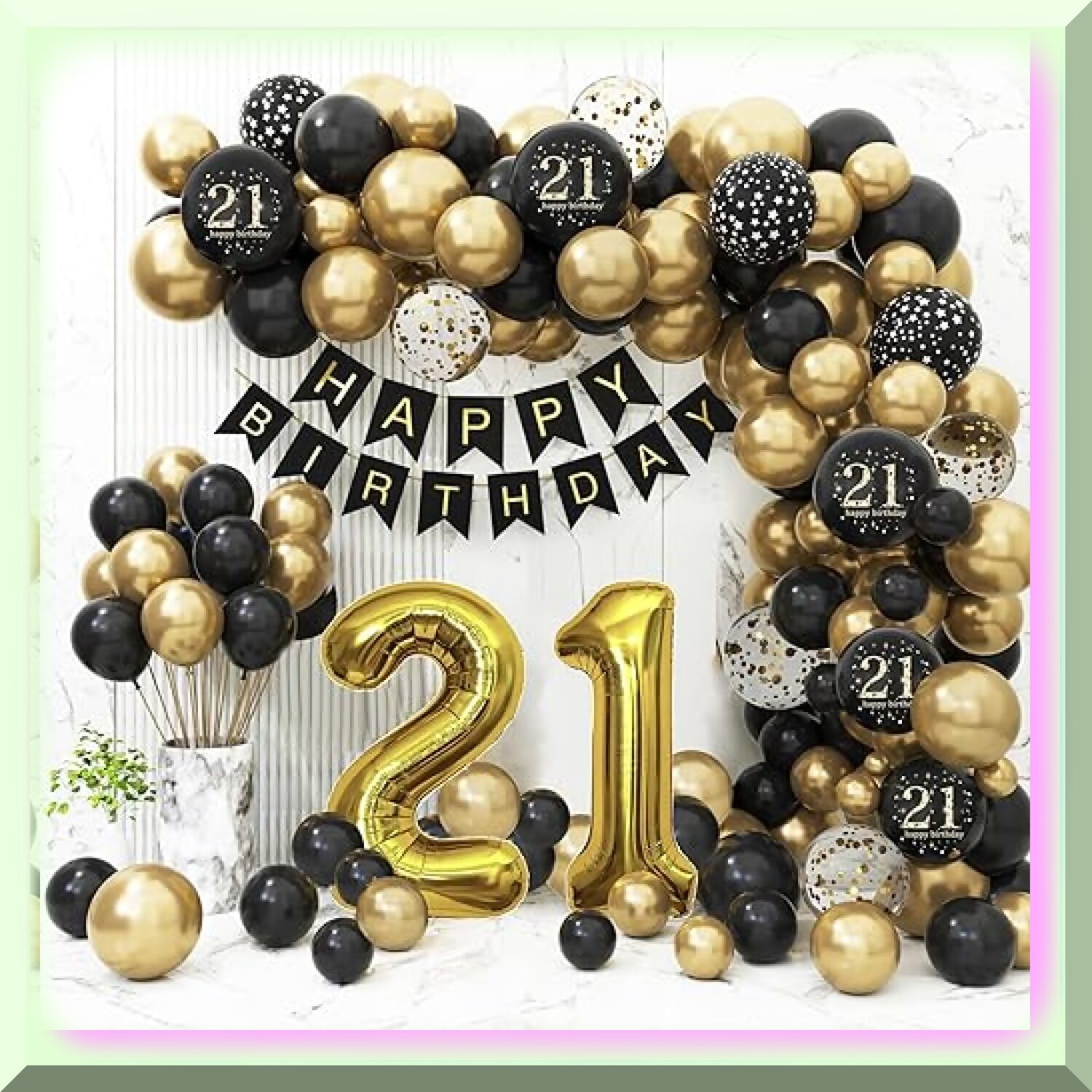 Golden Milestone: Black Gold 21st Birthday Balloon Set with Happy Birthday Banner Perfect Party Decorations for Boys Girls, Celebrate the 21st