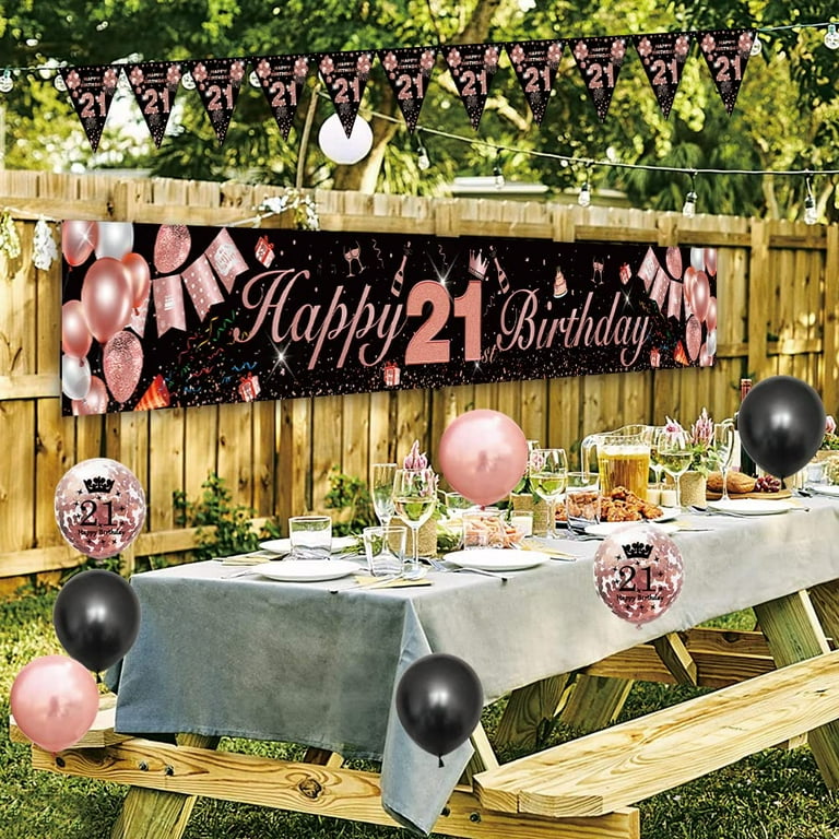 AYUQI 21st Birthday Decorations, Black Rose Gold Happy 21st