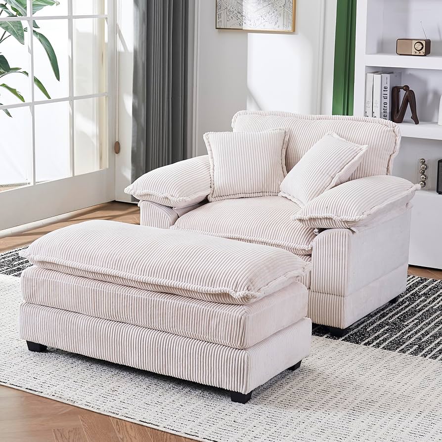 - ZEKKI Beige Velvety 46" Wide Oversized Chair Ottoman CB Furniture