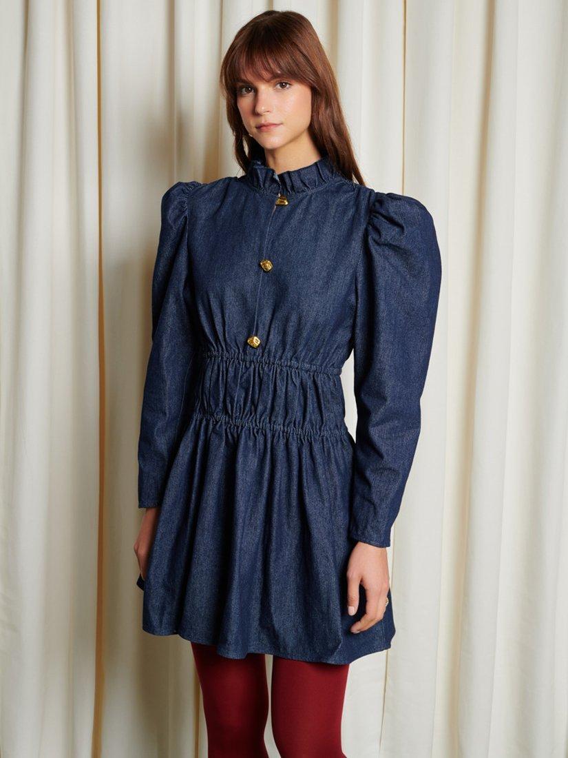 GHOSPELL Dallin Ruched Waist Denim Mini Dress, Blue Denim
