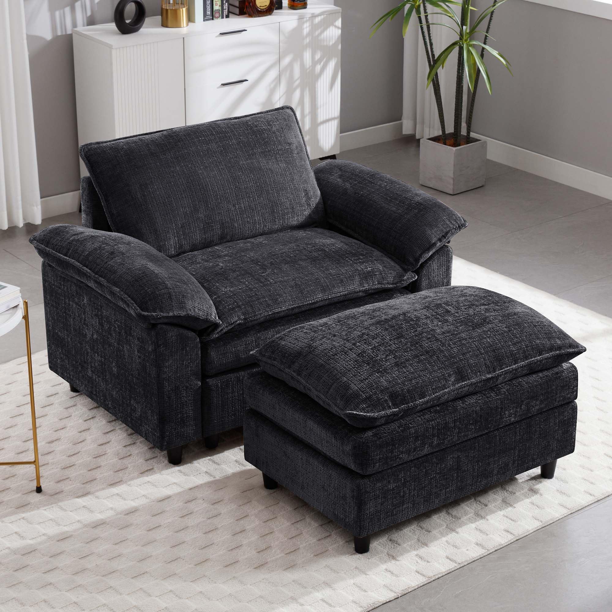 - Chenilli Oversized Accent Chair with Ottoman, Comfy Single Sofa Chair with Large Seat and Extra Wide Armrests, Modern Armchair Reading Chairs