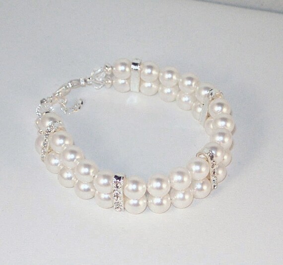 - Romantic 3-strand Swarovski Pearl Bridal Bracelet With Rhinestone