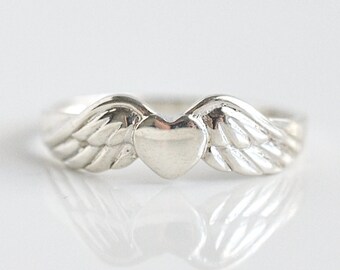 Sterling Silver Angel Wing Ring, Guardian Angel Ring for Women