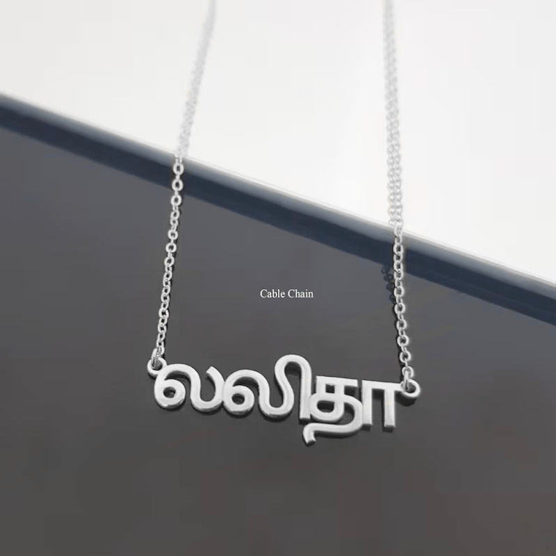 - Tamil Custom Name Necklace, Tamil Name Pendant, Tamil Name