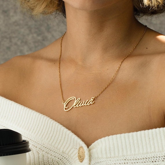 Name Necklace Gold, 14K Personalized Name Jewelry, Dainty Necklace, Size Chart for Shoes TheOlawaleBrand Cheap Sale