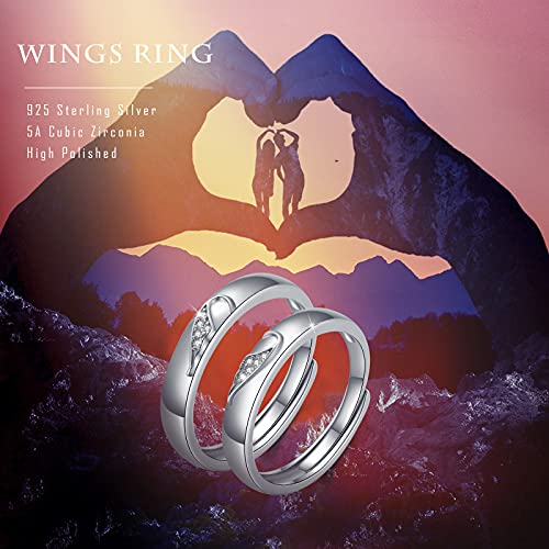 AOVEAO Angel Wings Couple Matching Rings 2pc,925 Sterling Sliver