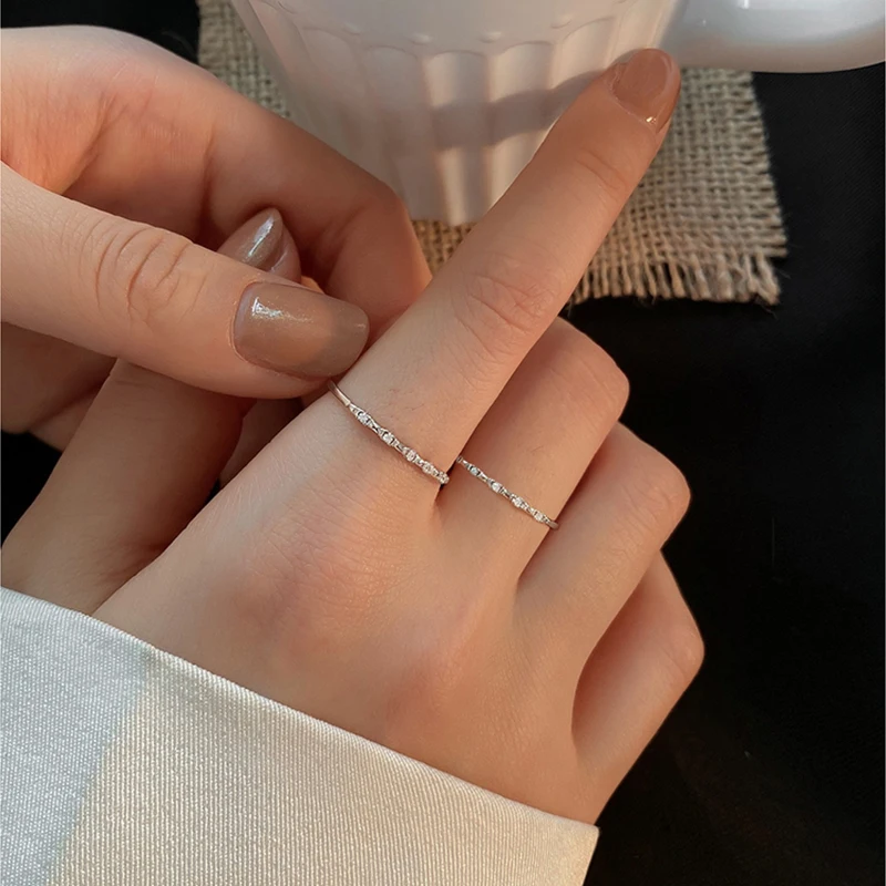 925 Sterling Silver Plain Ring Shiny Zircon Open Ring Multi