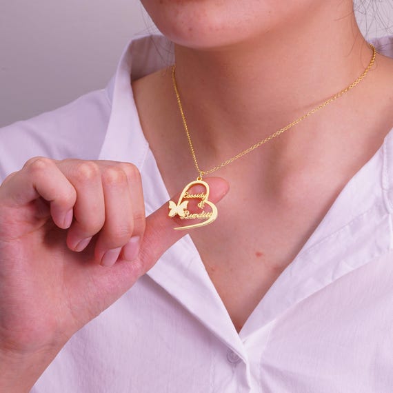 Custom Double Name Necklace, Heart Shaped Name Necklace