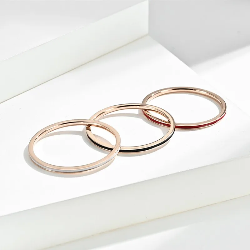 Rose Gold 1mm Thin Stackable Ring White/black/red Enamel Stainless