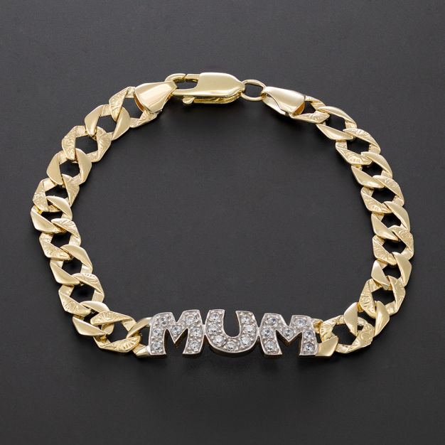 9ct Yellow Gold Square Curb CZ Set Mum Bracelet 7mm 7"