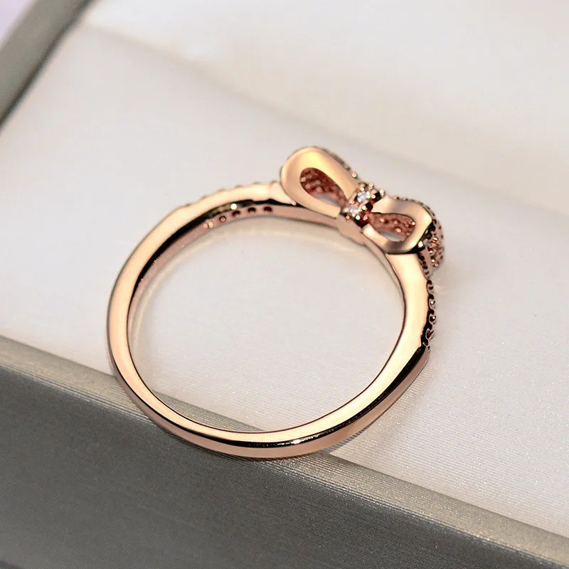CC Rose Gold Plated Rings For Women Bow-knot Cubic Zirconia