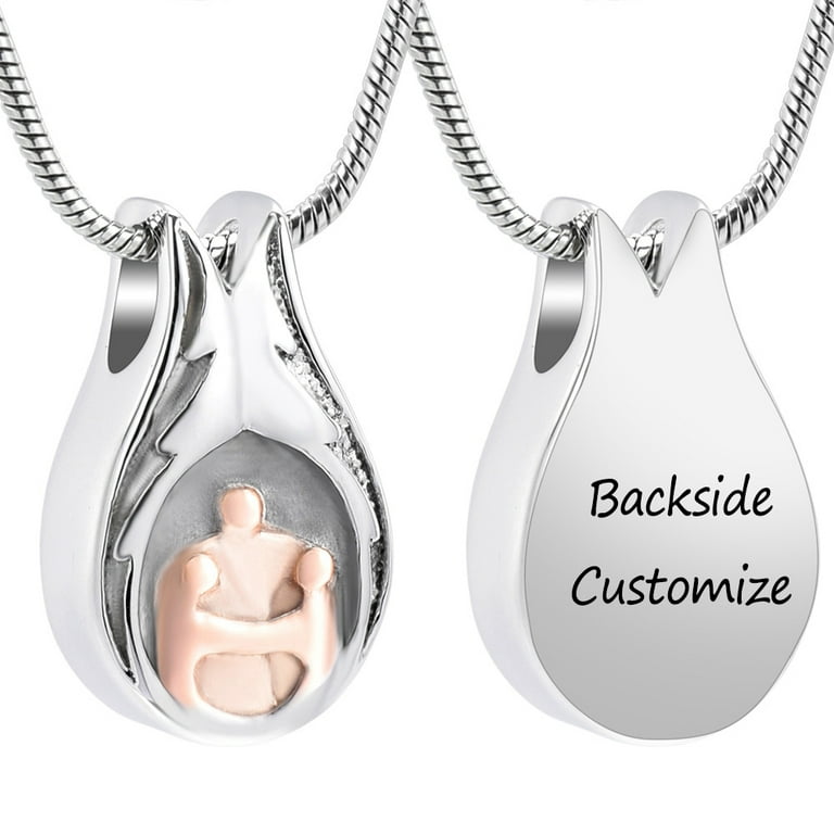 Family Teardrop Pendent for Ashes and Chain Cremation Jewelry for
