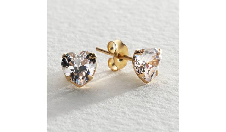 Buy Revere 9ct Gold Cubic Zirconia Heart Stud Earrings Womens