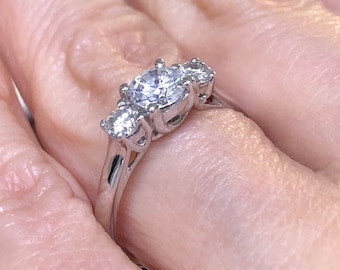 Trellis-Style Prongs Three Stone Diamond Ring, Past Present Future Ring In 14k White Gold, Women's Round Diamond Proposal Ring,, Size Chart for Shoes TheOlawaleBrand Cheap Sale