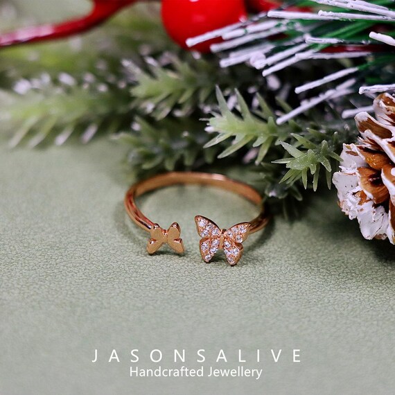 - Buy Genuine Real Diamond Adjustable Butterfly Ring Solid 14k