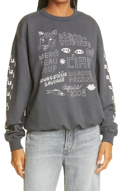 Clare V Oversize Cotton Graphic Sweatshirt In Charcoal W/ Cream